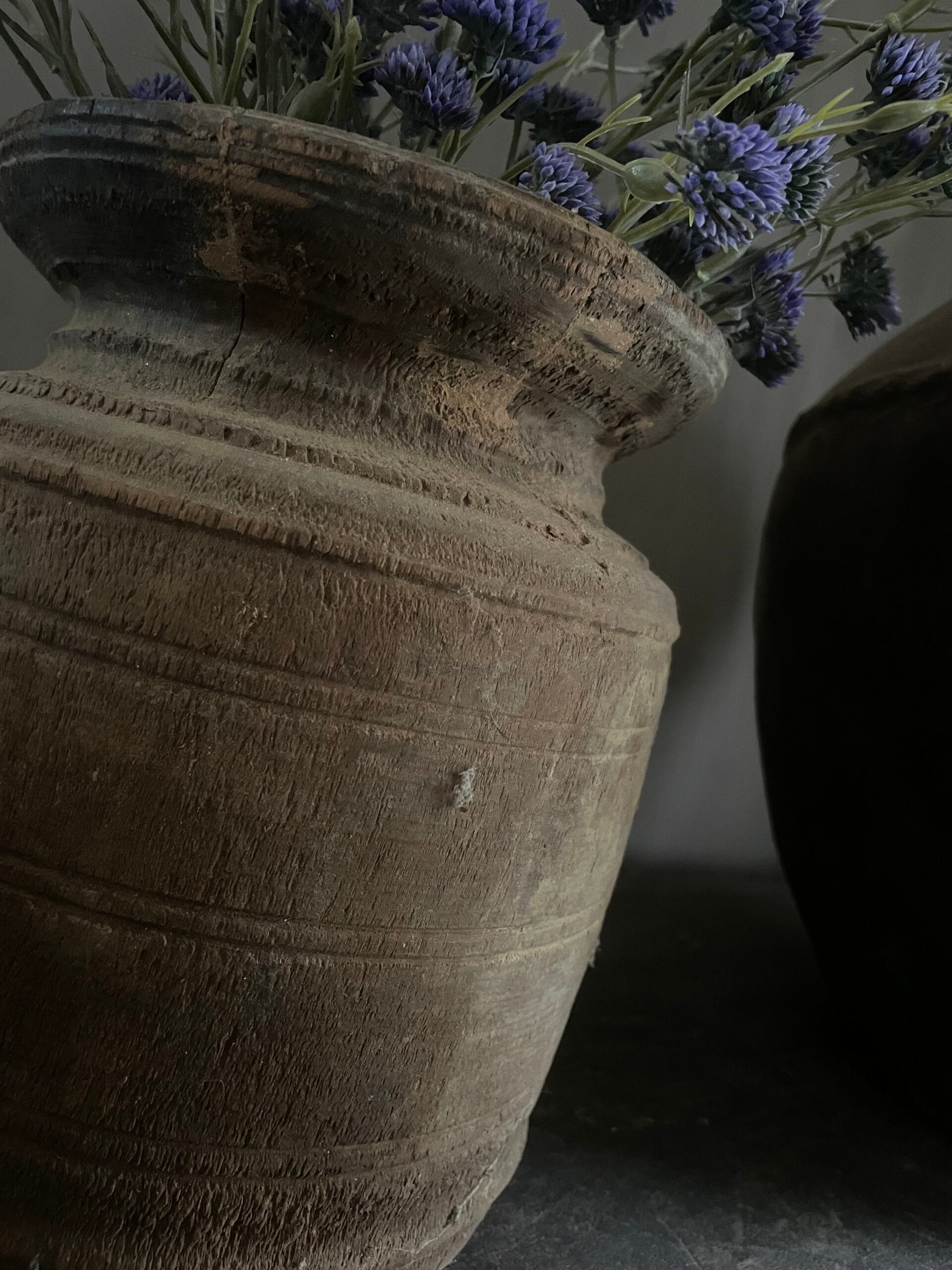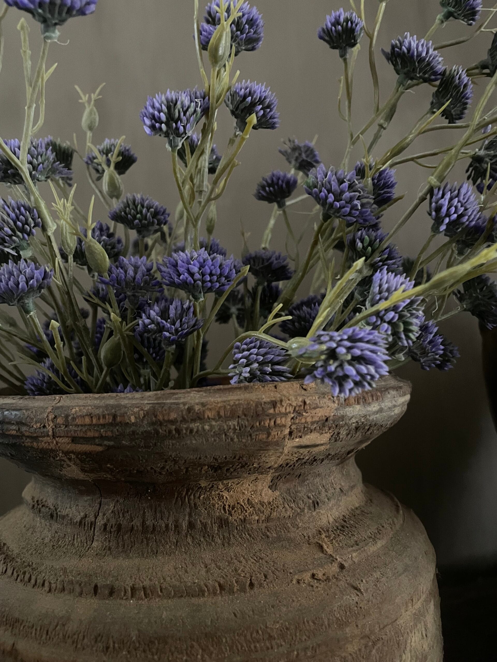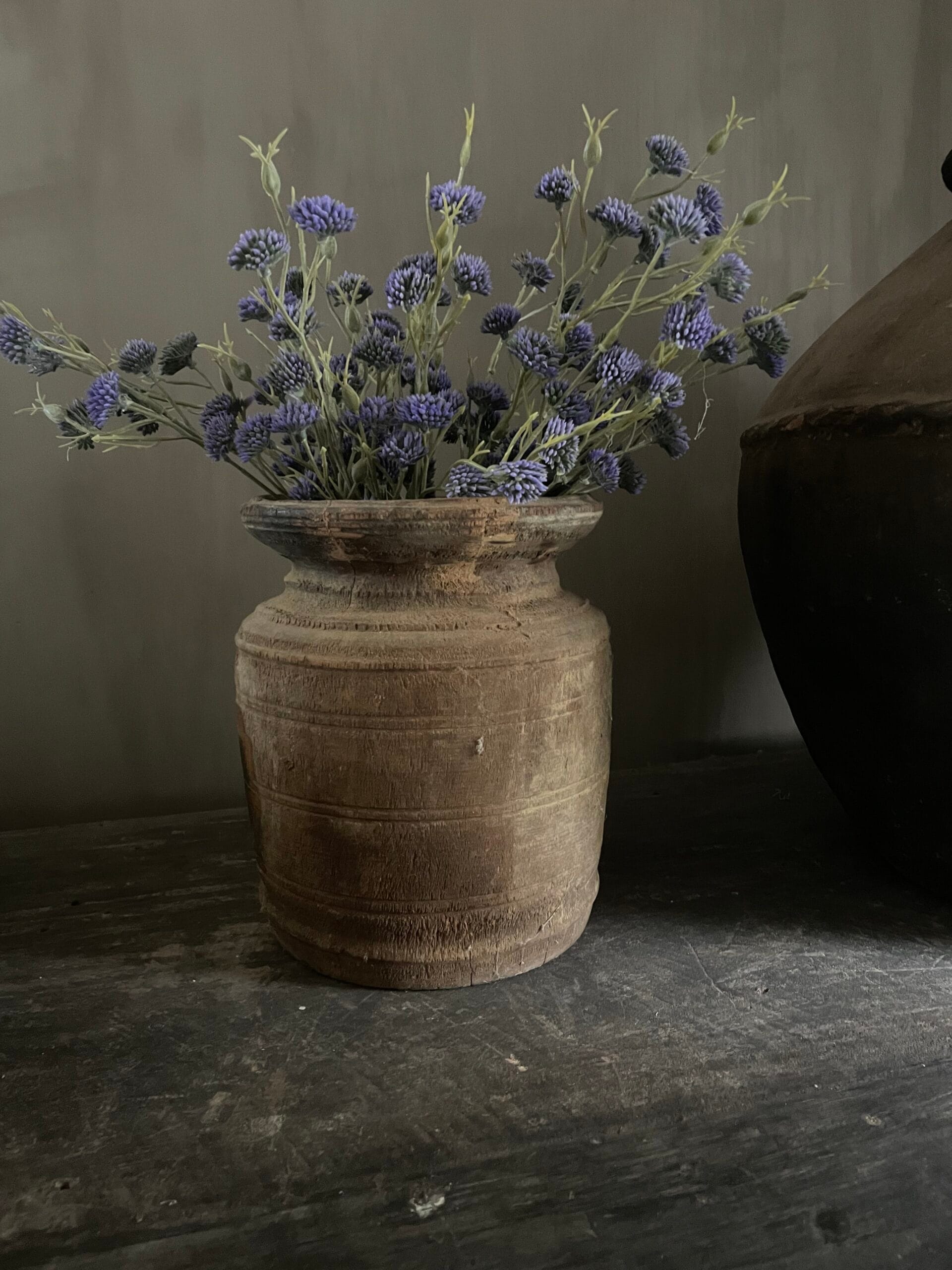 Stoere Nepalese pot met kunst bloemen