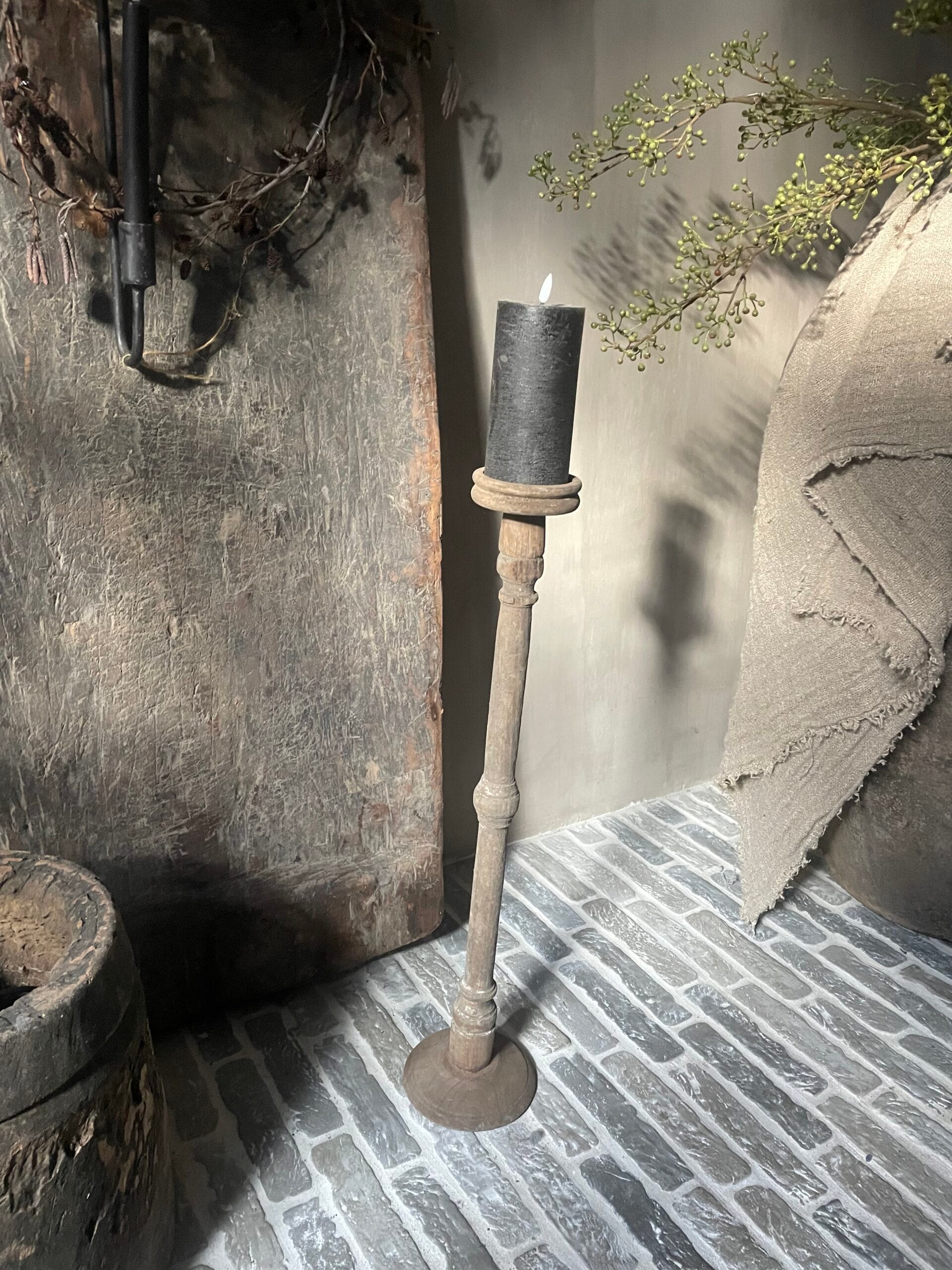 Oude houten kandelaar