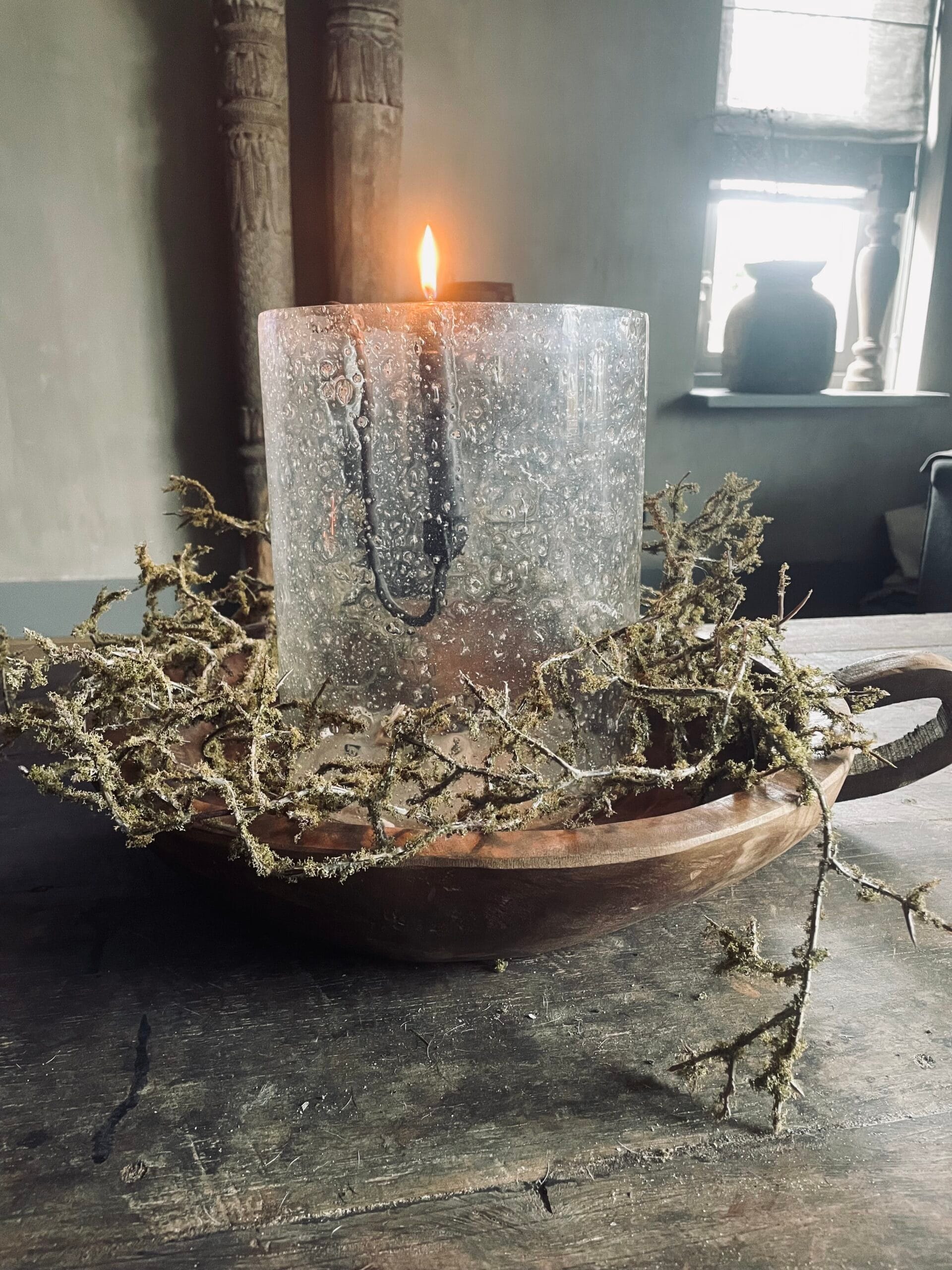 Leuk met een Windlicht en mos tak
