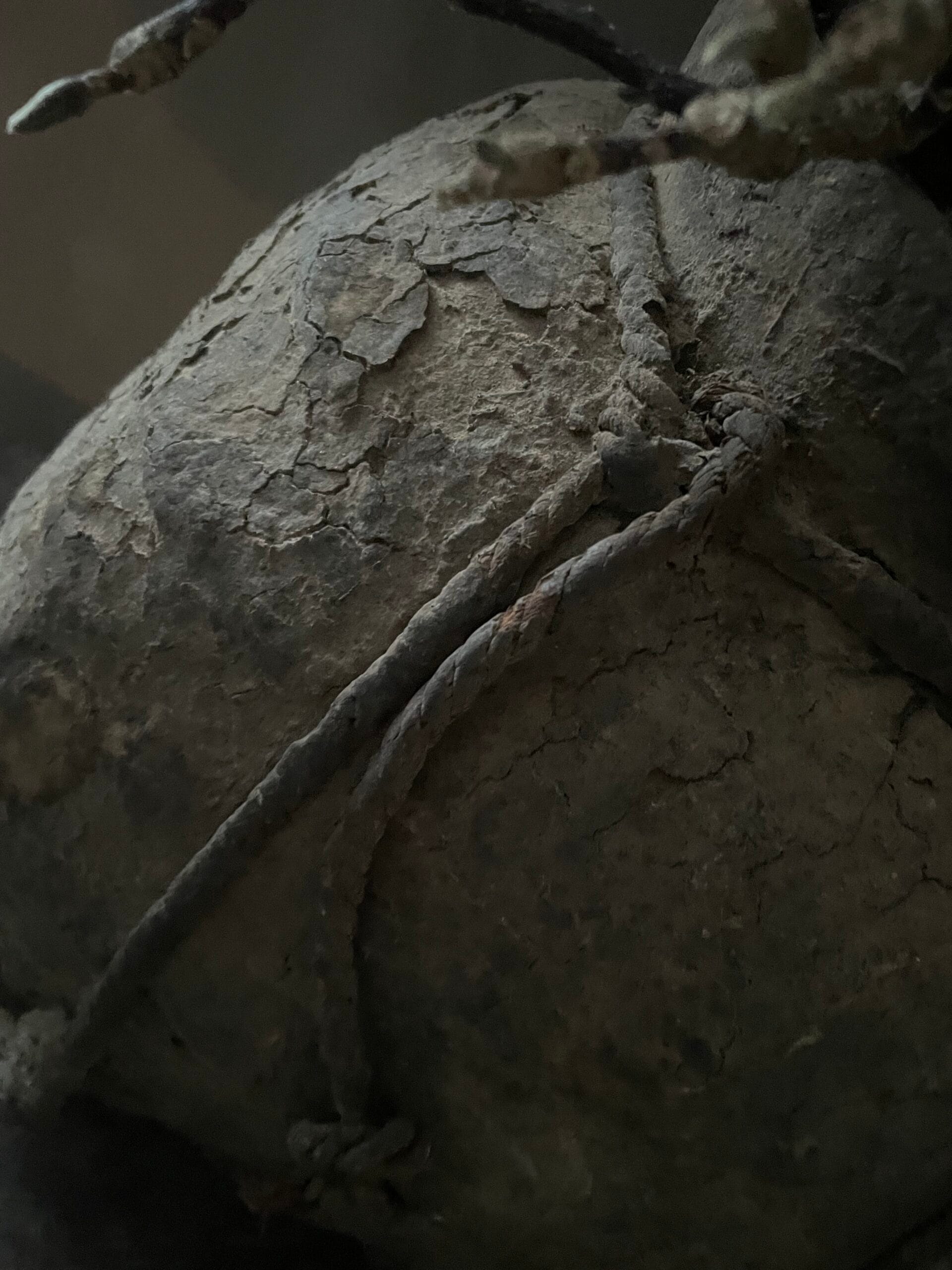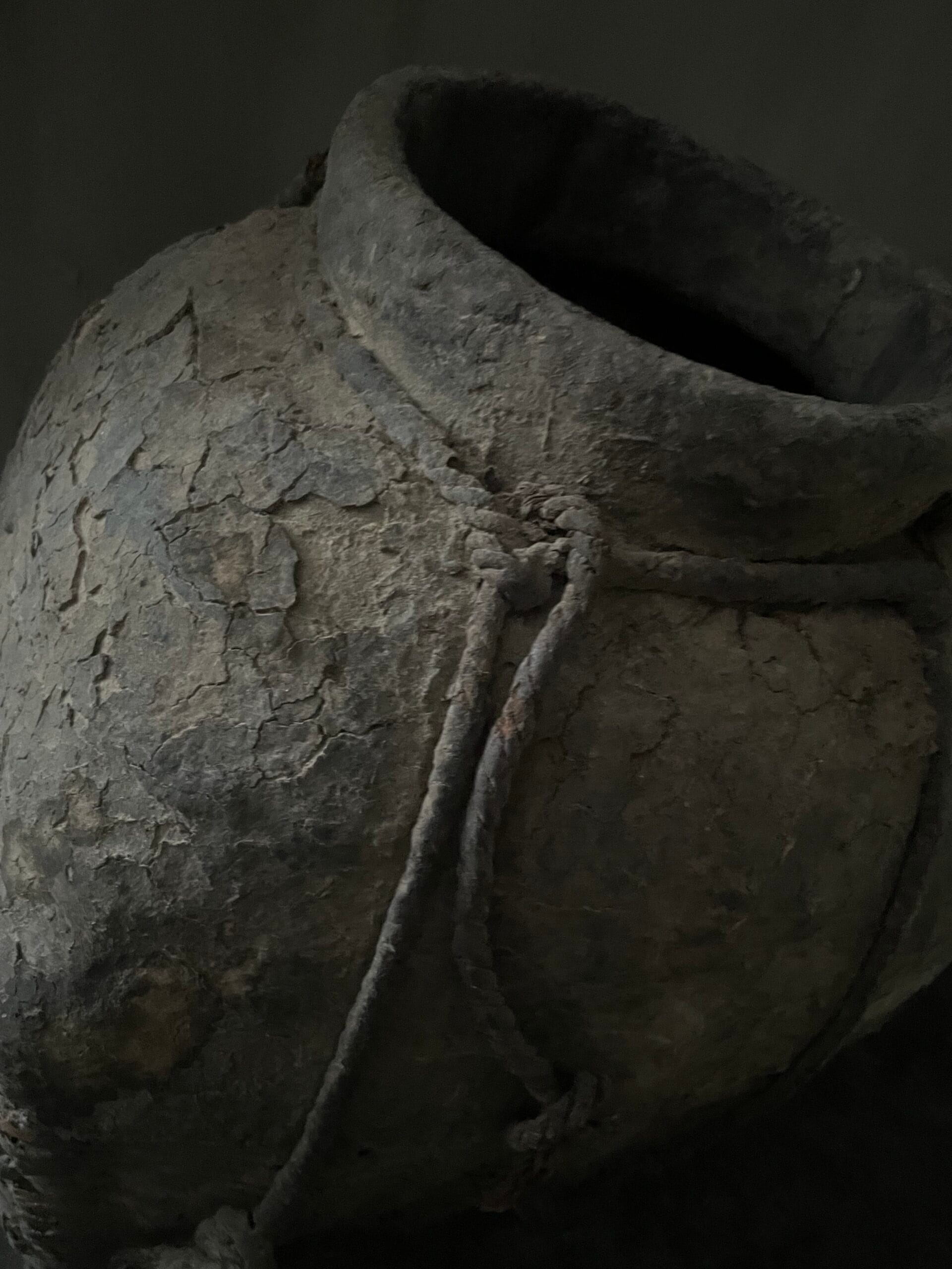 Sober van kleur, met leem resten en een oud touw wat het gewoon prachtig maakt.